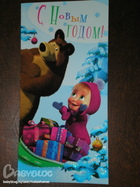 Открыточка.Средний деть её себе забрал,чуть не спит с ней-очень любит этот мультфильм.