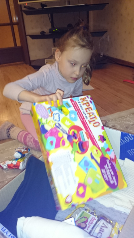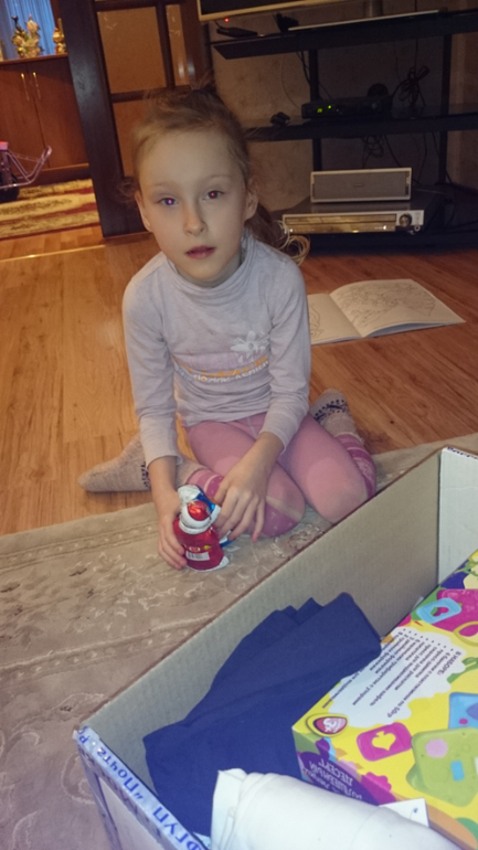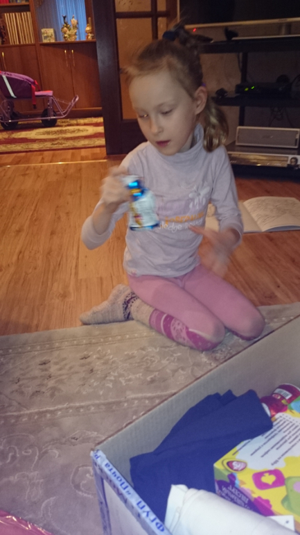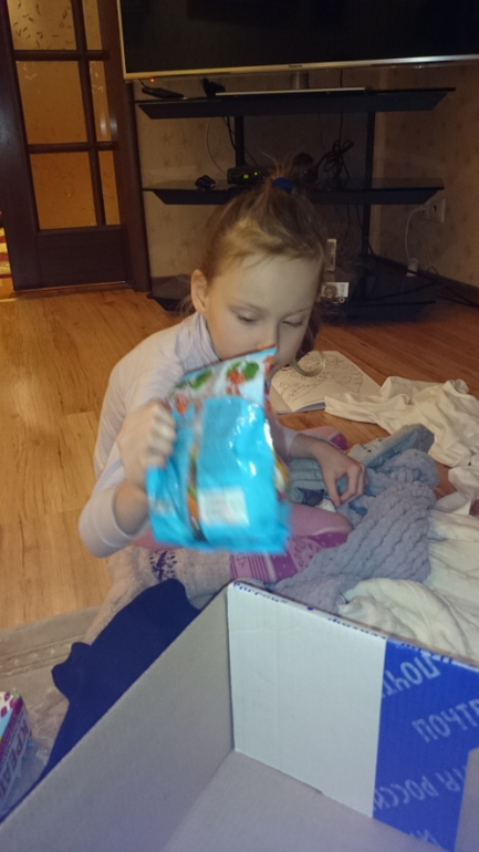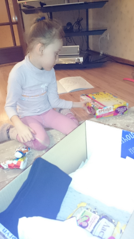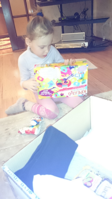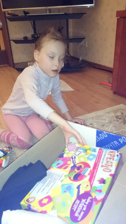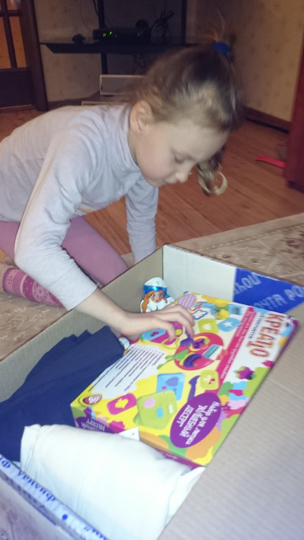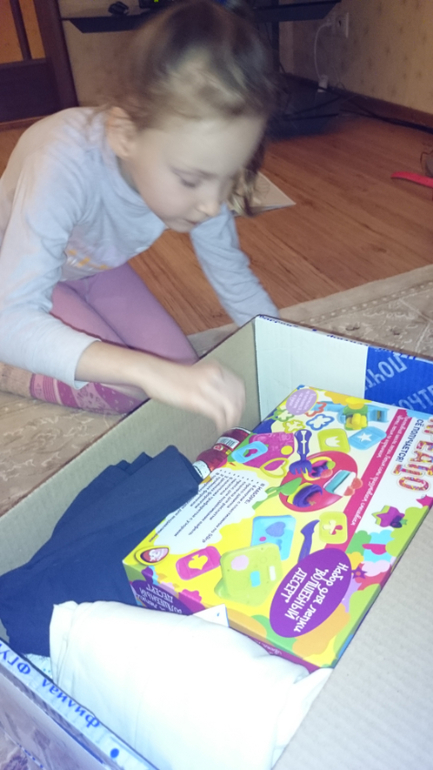 Благодарность фееВчера получили посылочку от нашей феечки Аллы из Москвы. Спасибо огромное за такие чудесные подарки, Викулька была очень довольна, очень ждала, когда я схожу на почту и принесу ей *СЮРПРИЗ ОТ ТЁТИ ФЕИ*, мы сейчас приболели и она особенно ждала сюрприз. Очень много обновок нам на вырост, но Вика стала всё примерять на себя, набор для лепки открыли сразу и стали лепить, а сколько сладостей)))))