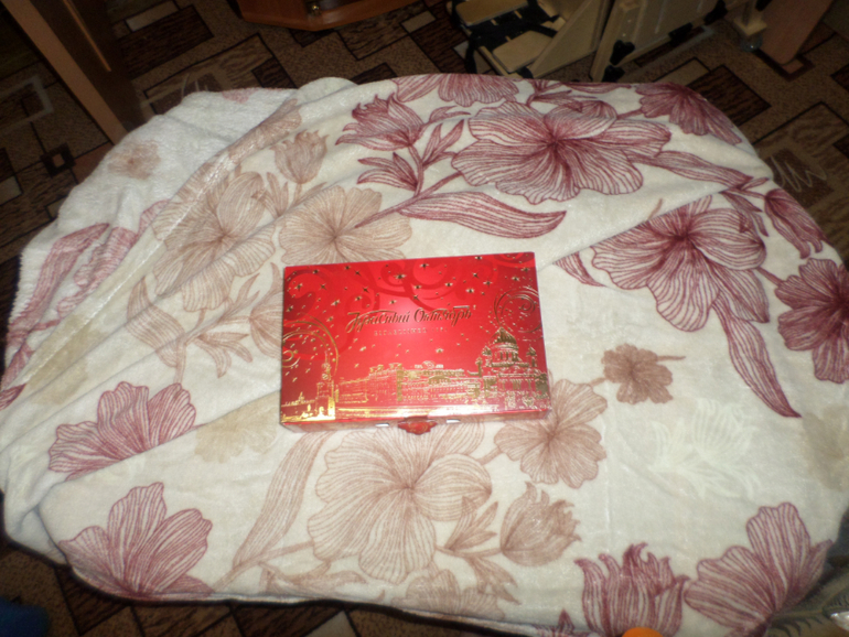 конфетки я убрала пока под елочку-оочень коробочка красивая)))..пледик-я о нем мечтала,о таком мягоньком,но теплом))убрала подальше-для нашей новой квартиры..поедет с нами на новое место жительства))