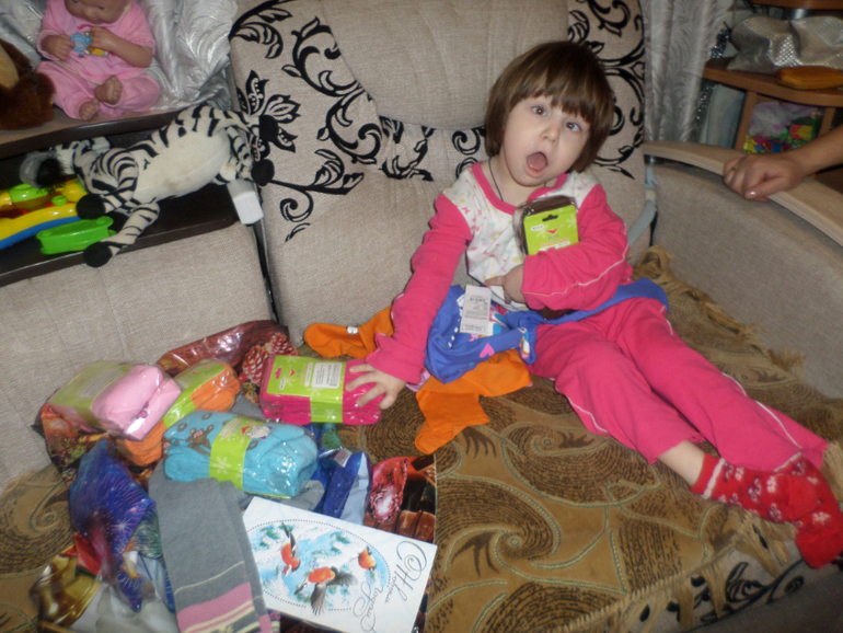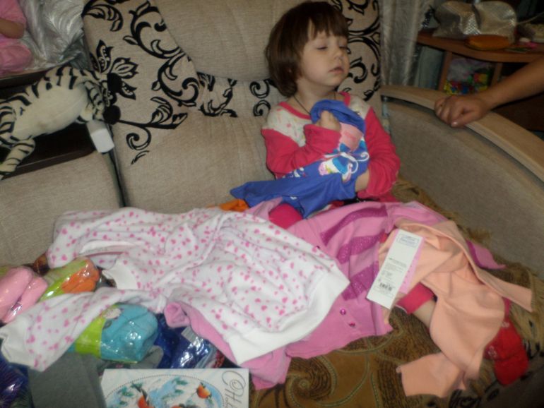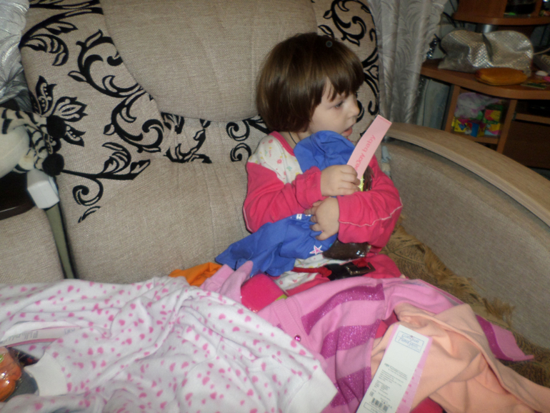 Машуня вообще зарылась в своих-вещах подарках)))..я смеялась над ней))..довольнющая))