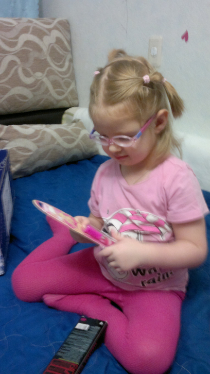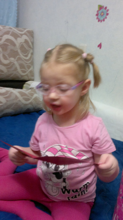 А еще мы прочитали изумительную открытку, в ней столько тепла, добра! Спасибо за такие добрые пожелания! В открытку Даша просто влюбилась, она постоянно приносит ее прочитать, "читает" сама, разглядывает ее! У нас даже слово новое появилось "пись--мо"!!!