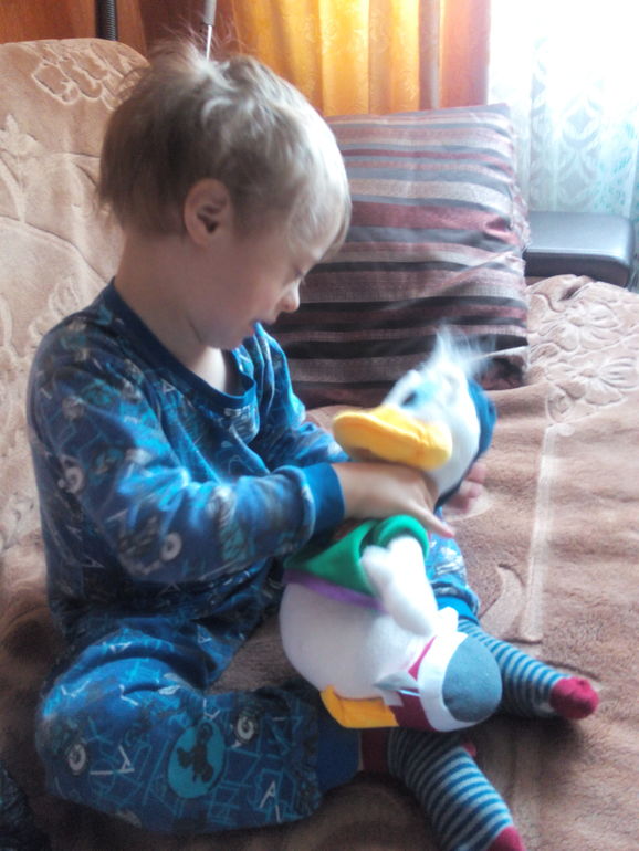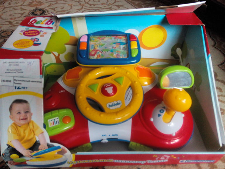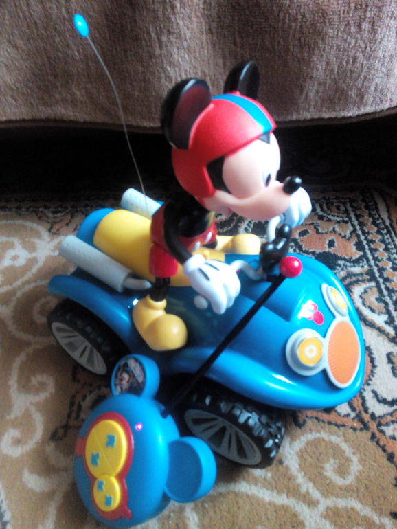 Антошка сразу бросился открывать коробку: постучал по ней, прислушался- что же там? Она же такая огромная! Открыли и я сразу вспомнила своё детство! Микки Маус и Дональд!!! Микки-крутой мышок ,в нынешние времена рассекает ( теперь по нашему дому) на квадрацикле! А помогает ему пока Антошина мама( то есть я) - Антон в роли механика! Вот научится "рулить" на музыкальном навигаторе, а заодно и английский учить начнём! Дональд очень смешные звуки издает- Антон хохотал, так что новый друг принят!