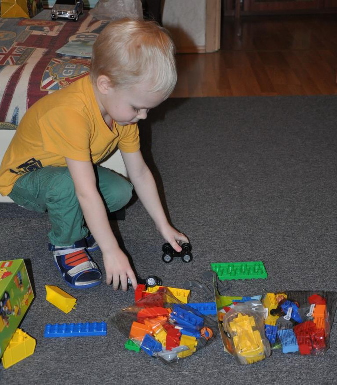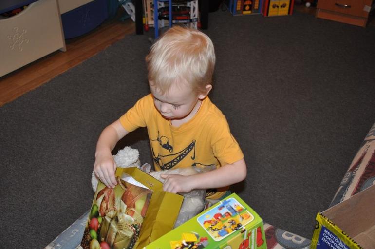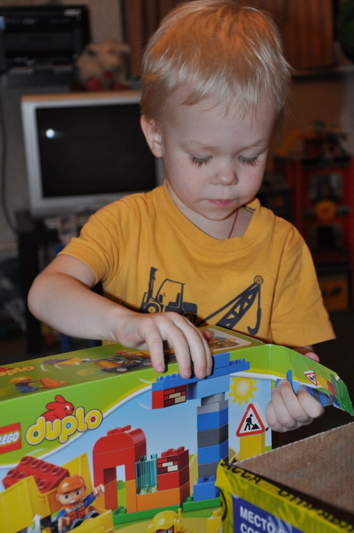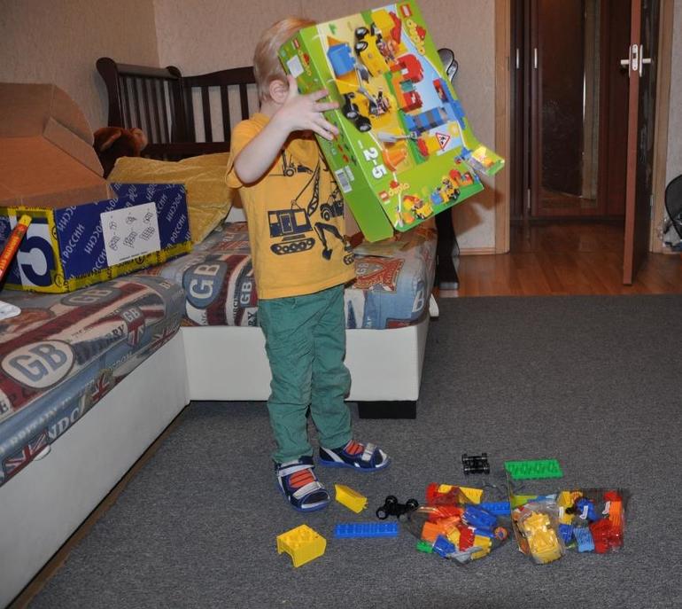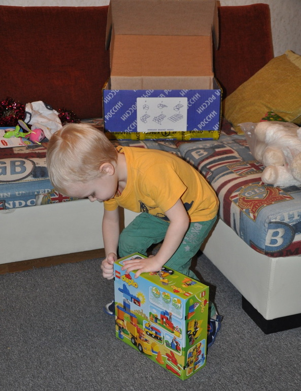 Лукьян прям не знал за что схватиться первее))) Он очень любит читать открыточки, но там же был ЛЕГО!!!))))