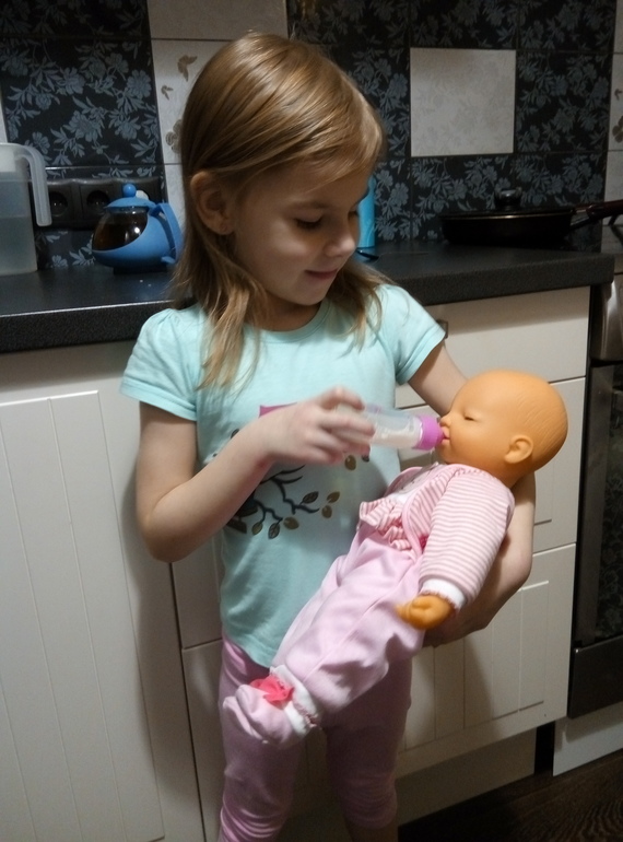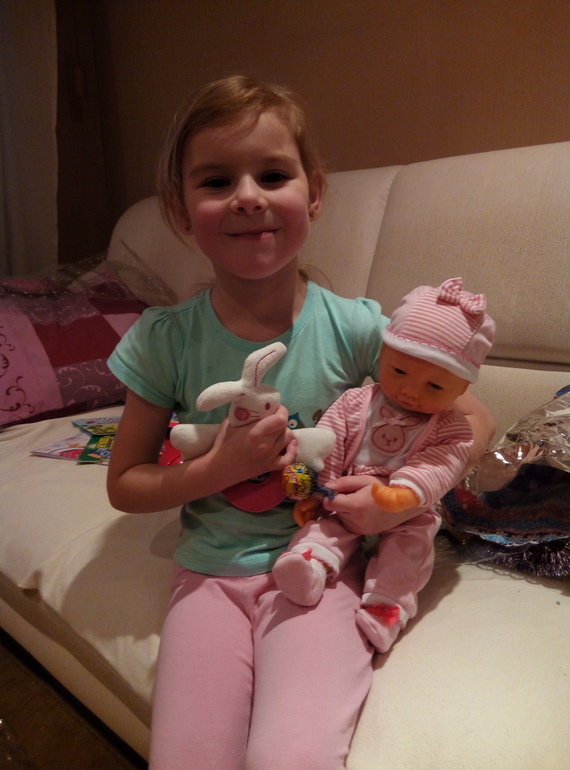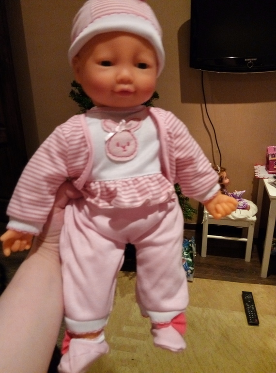 Первым делом распаковали куклу , и она оказалась с мимикой ! Нажимаешь на разные ручки-ножки , она говорит разные фразы и смеется, плачет , глазки открывает, закрывает ! Сделали небольшой апгрейд- проклеили разговаривающий блок пористой шумоизоляцией и она перестала громко кричать . В самый раз !