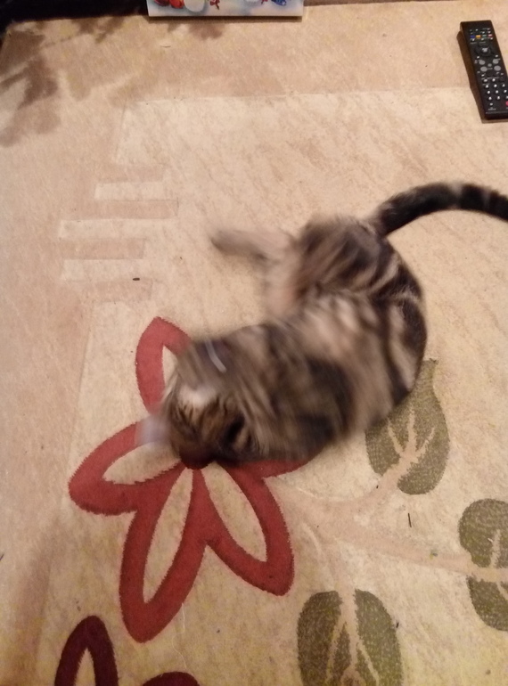 Коту понравилась мышка ! Гонял по дому , прятал под ковром и с видом охотника носил в зубах по дому !