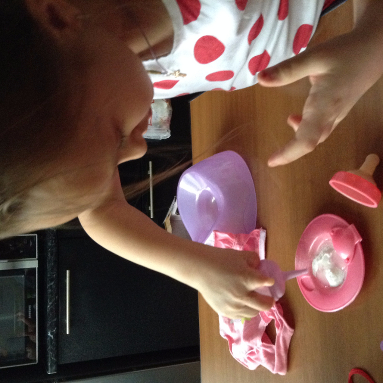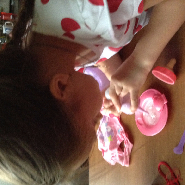 Все--кукле начали готовить кашу,поить водичкой из бутылочки,менять памперс и только успевать высаживать на горшок.