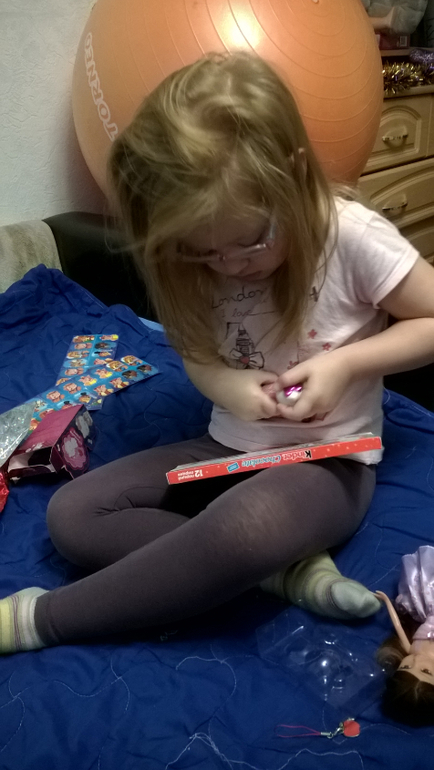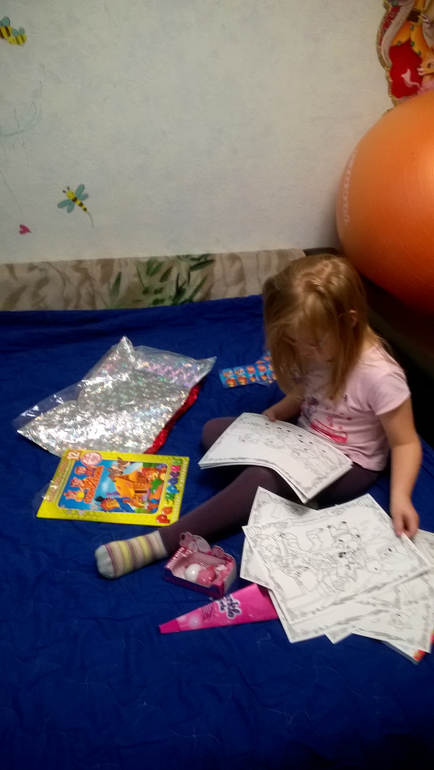 "И я хочу такие, мама")) А прелестный котенок, да еще с помадой, просто мечта! Очень понравилась раскраска "Три поросенка", уже начали разукрашивать, да еще и мультик посмотрели, и сказку уже почти наизусть знаем) И шоколад наилюбимейший! Дашутка сияет от радости! Спасибо Вам огромное! За чудесные подарки, за подаренную радость, счастье, за новогоднее чудо! Спасибо за Ваше тепло, внимание и заботу! С Новым Годом Вас! Пусть наступивший год приносит только добро, счастье и радость Вам и вашим близким! Пусть исполнит все желания и мечты!
