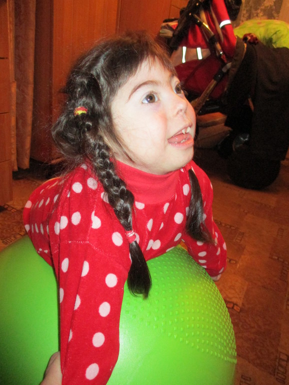 А мячик тут же услужливо подставил свой зеленый успокаивающий бок для Лизочки.