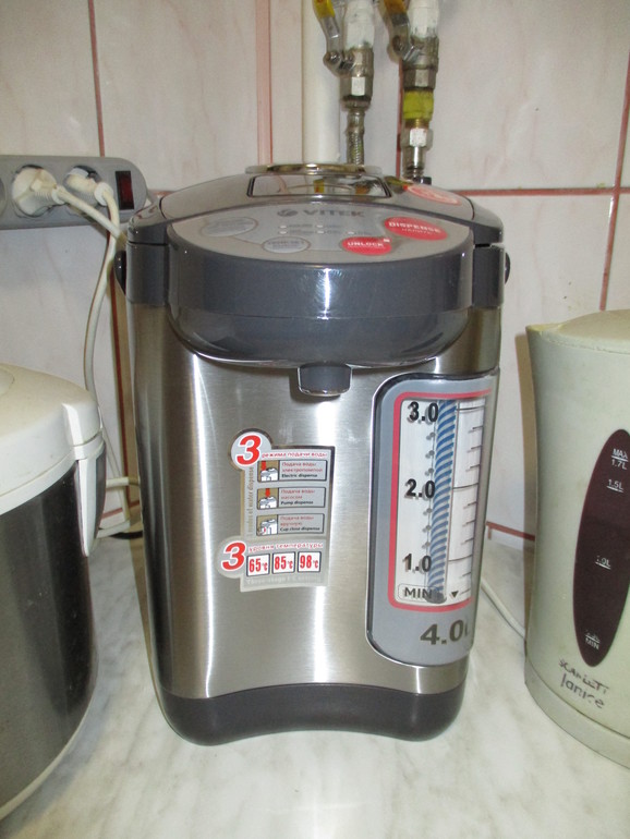 Кашки поехали в шкаф, крема в ящичек, а термопот занял свое почетное центральное место на кухне.