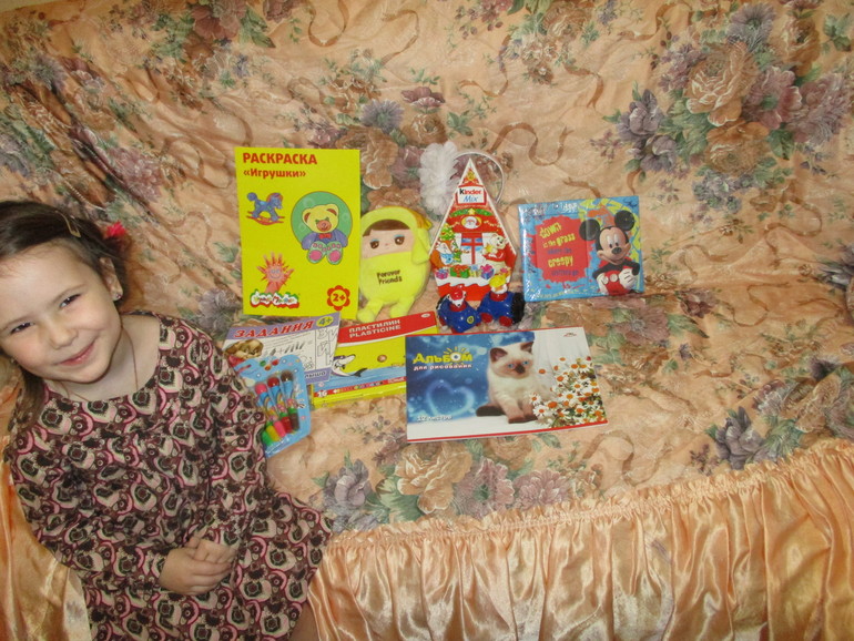 Благодарность фееСегодня у нас был волшебный день подарков ) Нам вручили подарочки для Данечки и Машеньки в одном из магазинов нашего города. Таинственные Феечки, не знаю, сколько их. Но все волшебные! Они уже творили для Данечки свое волшебство, их антистрессовый Дед Мороз каждый год радует нас под елочкой. И вот снова порадовали наших деток, за что мы им очень благодарны. Детки заболели, и сейчас им положительные эмоции помогают восстановиться.
