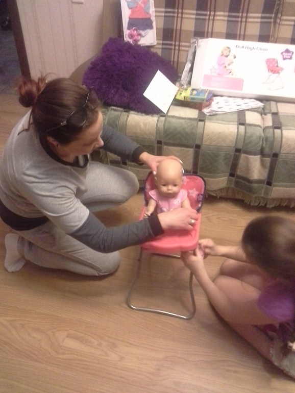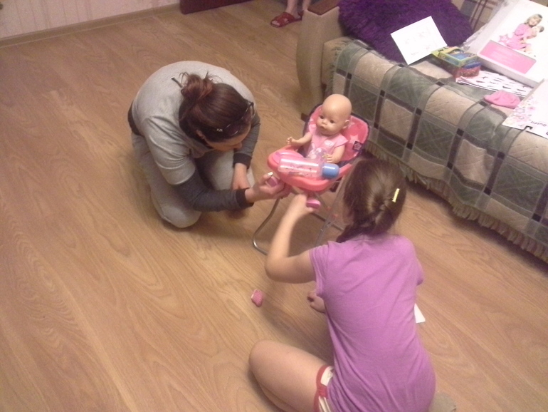Для куклы Беби Бон-отличный кормительный стульчик, которая сразу же была туда усажена. Стульчик фирмы Doll High Chair, не только хорош. Но и очень удобен-Вика быстро и самостоятельно с ним справилась. Разобрала и поставила.