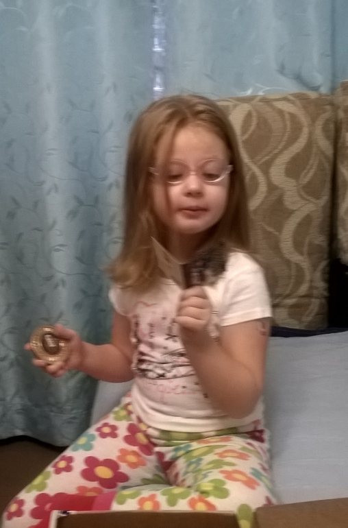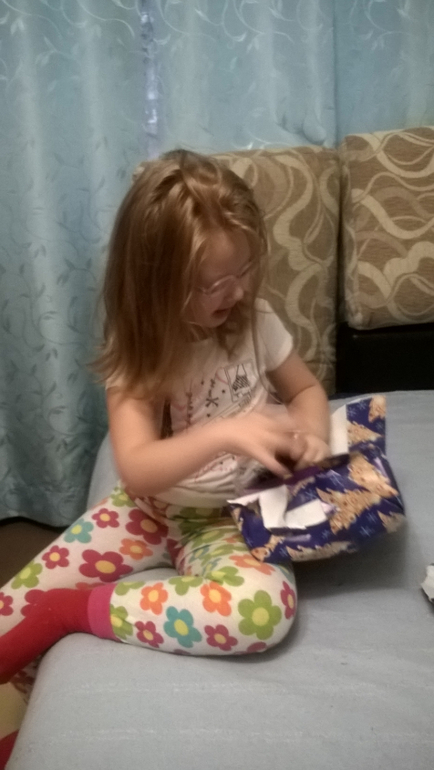 Благодарность фееФеечка Юлия, огромное спасибо за новогоднее чудо! Даша такая счастливая) Открыла коробку а там... такой красивый и нарядный подарок! Сразу увидела открытку и шоколадную монету (не успела заметить она уже ее открыла и съела)), так забавно читала открытку) сначала сама "прочитала", потом мне дала А как ей понравилось вертеть подарок что же там есть... открыла, обрадовалась... Обожаемые наряды, да еще такие красивые и любимый конструктор! Скорее побежала примерять наряды, то одну кофточку оденет, то другую, обе нравятся, все выбрать не могла какая больше) кофточки прелесть. А конструктор скорее нужно собрать, в ззайку и птичку влюбилась, на качельку посадит и ходит качает их))