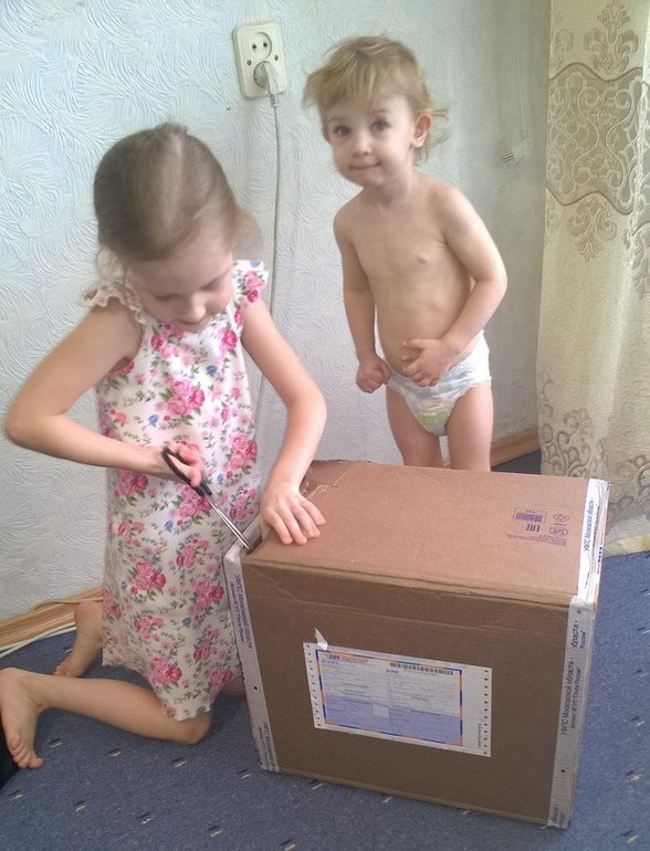 Сидели утром сегодня завтракали и никого не ждали, а тут звонок в дверь и курьер с посылочкой! Очень неожиданно и приятно! У детей сразу ушки до макушки и полезли в коробку разглядывать нежданные подарочки! )