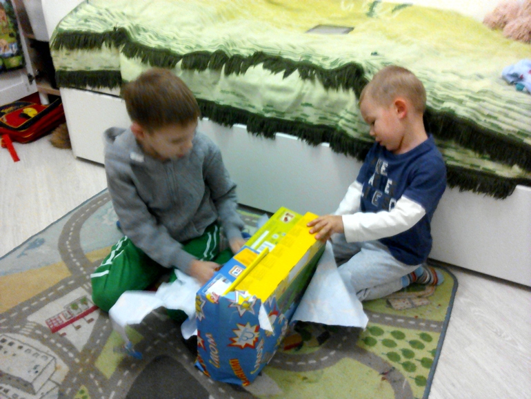 Позавчера звонит курьер,говорит везу вам посылку. Мы не ждали и были не в курсе,меня не было дома. Попросила родственника состыковаться с курьером. Пока вернулась сама,уже поздно было и за коробкой зашла только вчера. Думала,что наверное от Феи к Новому году подарок задержался для Макара. Пока он в школе,решила открыть и под ёлку положить,сюрприз сделать.
