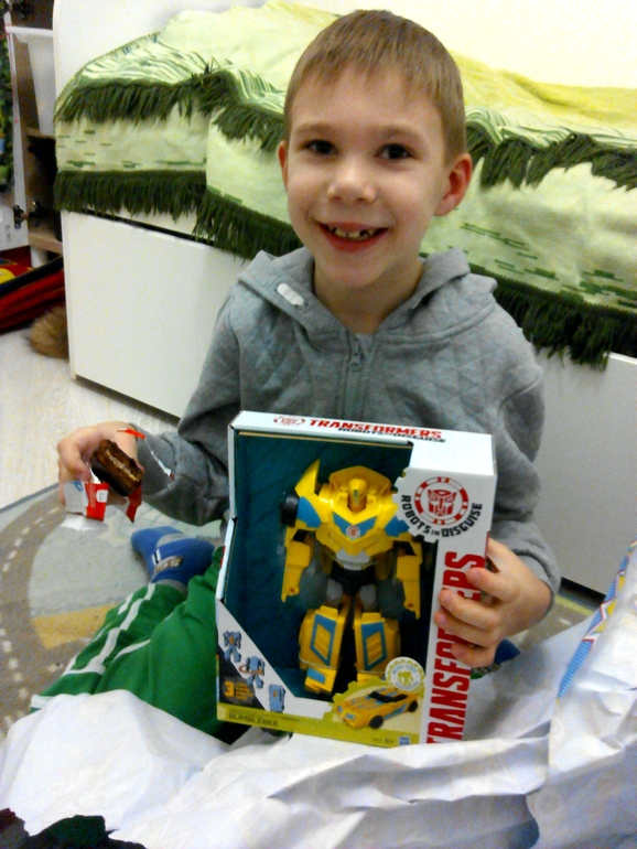 От Бамблби Макар пищал просто))) Это просто еще раз в точку! Мы вот третий день смотрим Трансформеры, Макар прям с открытым ртом сидит))) И теперь он фанат, а тут Бамблби! Он счастлив))) Ну и сладости сражу же умяли, припрятать успела не все)))