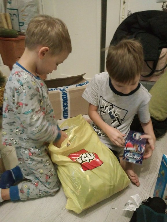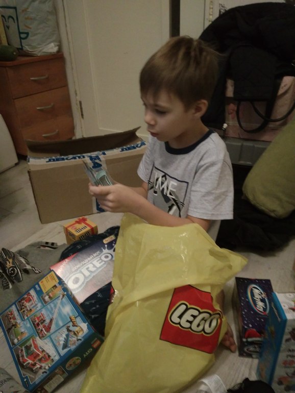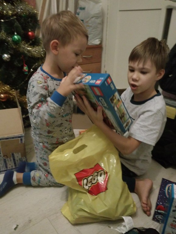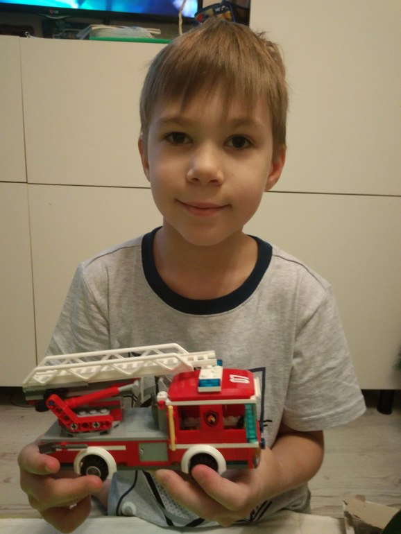 Очень все понравилось. Макар с Ваней сразу приступили к сбору Лего,конечно. Получилась крутая пожарная машина и два человечка. Ваня,к слову,обожает именно человечков,а Макар технику,так что угодили всем! Ваня ещё приватизировал машинку маленькую,а Макар сладости. От меня спасибо за кофточку,я неравнодушна к одежде,каюсь😁 и за шоколадку с Санкт-Петербургом,это так мило😊. Немного фото процесса,дети сонные,только проснулись.