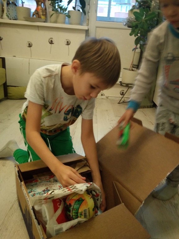 Благодарность фееСегодня нам пришла ещё одна посылочка, от Новосельцева Н.В. ( извиняюсь,если не правильно прочитала) из Москвы. Номерка там не нашли. Макар уже не ждал подарков,а тут я опять коробку принесла,сколько радости было😁🎄🎁.