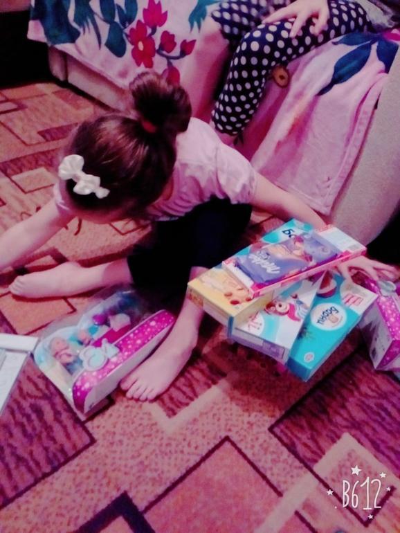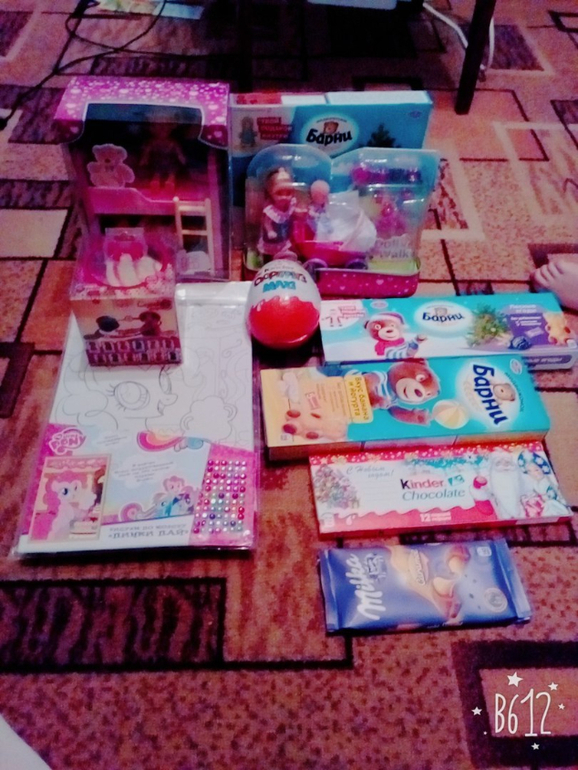И с прибытием посылочки в нашем новом домике появились новые жители. ..очень суперские куколки-красотки))..Игра стала еще интереснее.Так же были шикарные картинки-холсты-раскраски (Ксения у нас уже художничает).Море наших любимых сладостей.Бооольшой киндер(не видела таких у нас))))..Спасибо феечка за внимание,заботу и волшебство для наших деток.с новым годом 😘