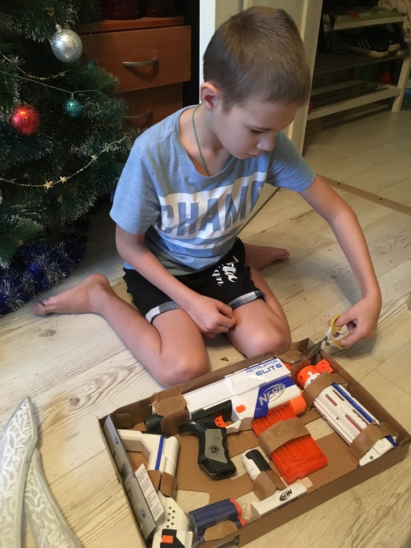 Он очень ждал Нерф! Собирал сам его, я даже не помогала. Теперь дома перестрелки, бои и окопы. Я жду лета, на даче с такой техникой раздолье. Главное в грядках бабушкиных потом патроны найти😅