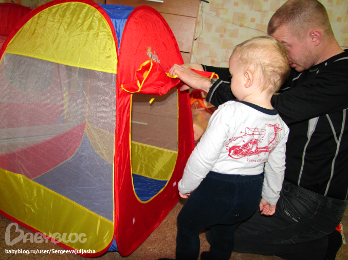 у нас такая же палатка))) вещь!!!!!!!!!!!!!!!!!!! и для хранения игрушек удобна, и дял пряток, и для дневного сна