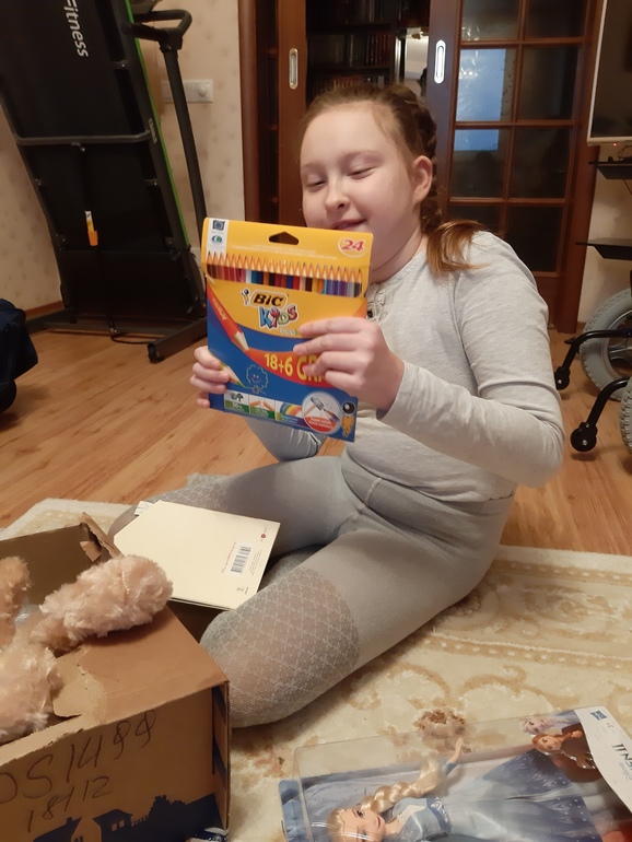 Благодарность фееВои и Викуля получила подарочек от Феи, спасибо огромное, Вика очень рада, сразу карандаши положила к себе на парту, сказала, что это не для школы, дома рисовать будет, мишка пополнил её коллекцию))))