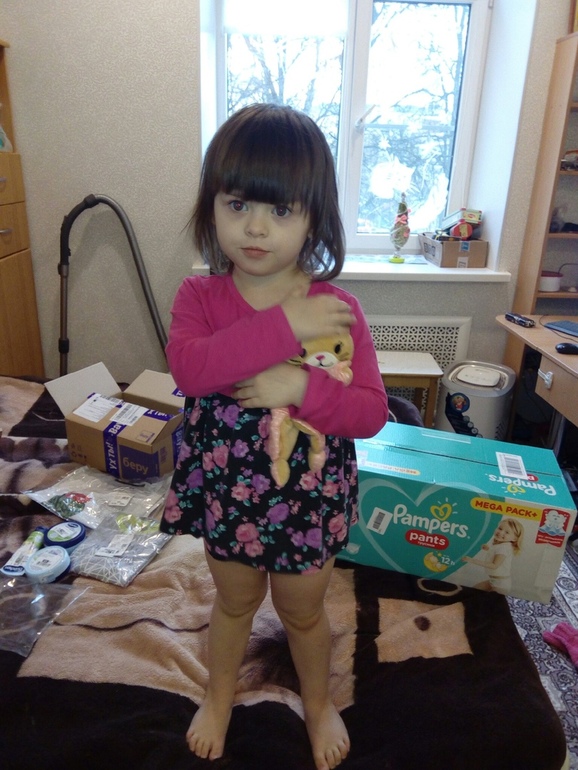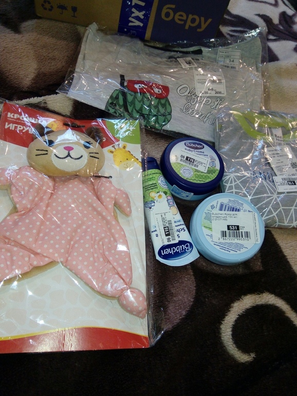 Классные футболочки, средства по уходу, кисонька, которую Маша тут же назвала "Клубничкой"