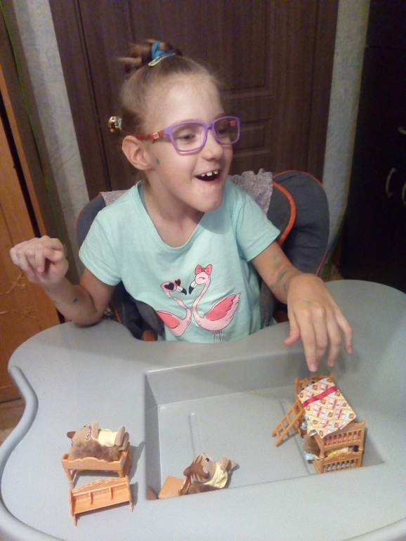 Еще в посылочке набор мебели с белочками, кроватка двухэтажная, от которой Анюта была в восторге, сразу лестницу подставила и начала укладывать белок спать, но кроватей не хватило)) Белочек 4 шт, а кроватей всего 2))) поэтому будут спать поперек) В этом наборчике были предметы быта, в т.ч. крохотный глобус)))