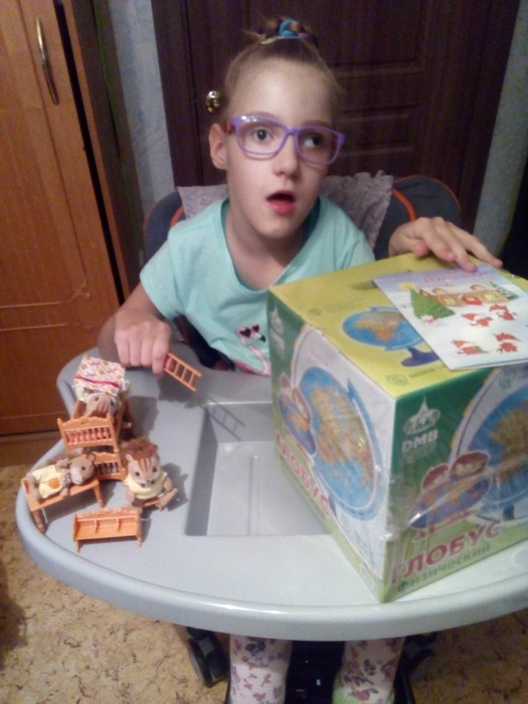 Глобус, правда, другой сейчас. Физический. А в прошлой посылке политический. Уже начали с Аней заниматься по ним, чтобы догнать одноклассников. Во 2 классе дети уже начали изучать страны, города и растительность.
