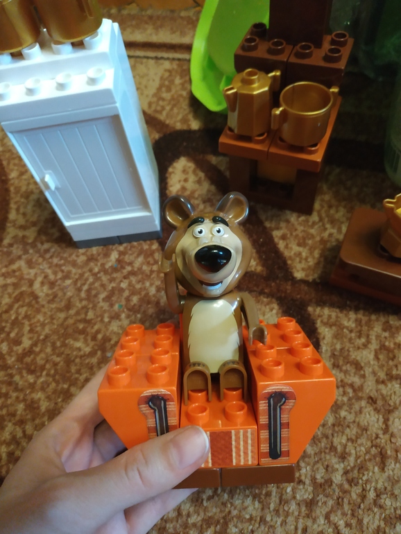 А там конструктор с крупными деталями "Маша и медведь" как раз про нас😉 в наборе мебель для кухни и медведь как раз у нас есть кукольный домик,но он пустой, теперь уже нет😋