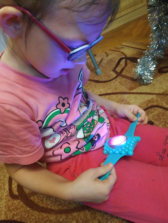 Ещё Лена подарила Маше красивую теплую кофточку, правда померить не удалось, Маша не далась, позже вставлю фото. Леденец был съеден чуть ли не в упаковке😂 Мишка просто прелесть и ещё классная корзинка-контейнер и музыкальный браслет)