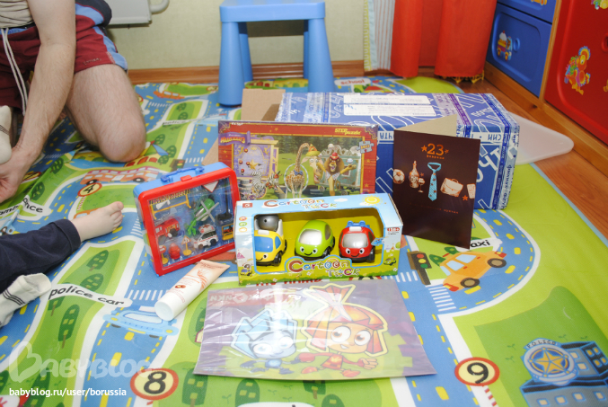 Хотим еще раз поблагодарить вас за замечательные подарочки. Мои мальчишки очень довольные, до сих пор играют машинками, особенно старший в восторге - он обожает дорожные знаки и давно меня просил ему их купить. И про меня даже не забыли, и папе угодили - он любит пазлы, а ребятки мои любят смотреть, как папа их собирает :)