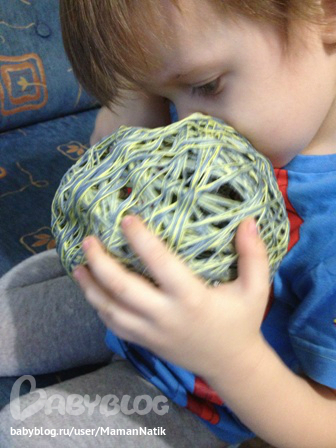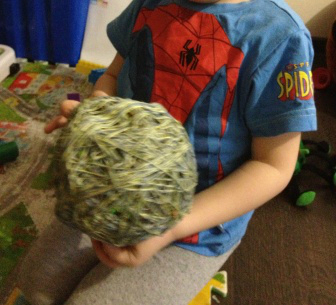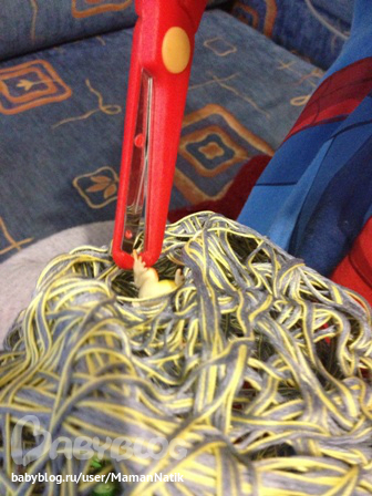 Сначала Мэт взял ножницы и использовал их как пинцет. Шар был достаточно плотным, и не было возможности просунуть внутрь руки.
