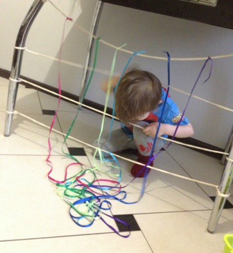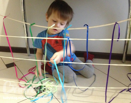 Потом мы сами сплели паутину из лент и бельевой веревки))) Ни чего так...получилось)