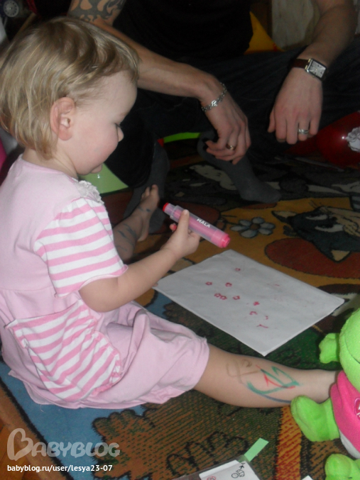Это фломастеры печати, Лиза очень любит фломастеры...это заметно по нашим разукрашенным ножкам)) Квакушку целый день целовала))