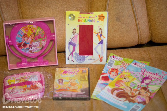 Санечке - косметичка и зеркальце для юной леди, колготки для нее же, ну и духовная пища. Саша пока у бабушки, но я уже пообещала передать ей её подарки ))