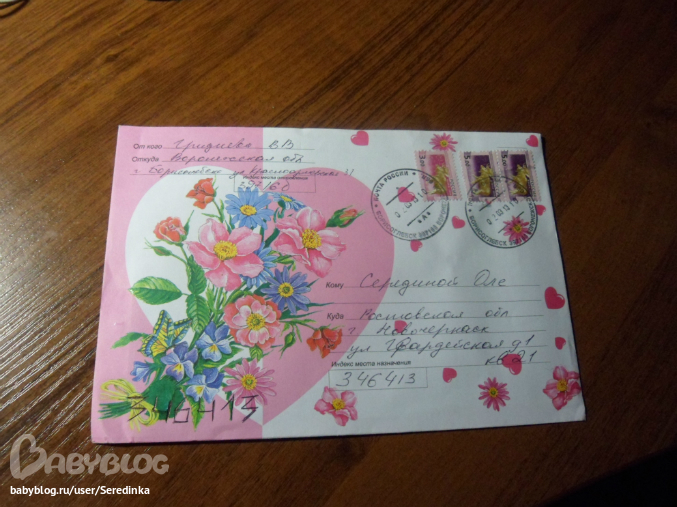 Подарки от подружек)Сегодня вечером мой муж пришел домой с загадочной улыбкой и говорит: "Пляши! Ты не поверишь, но в наше время, еще кто то пишет письма, или открытки! Самые настоящие, с марками, которые по почте приходят!" Я обалдела, ни от кого ничего не ожидала! А когда адресок увидела, то вообще так обрадовалась!!!! Это был конвертик от моей замечательной