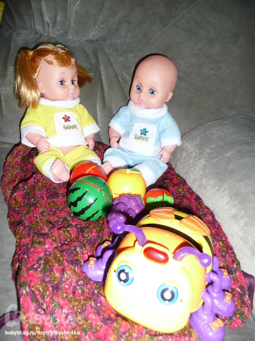 Жучек и куколки просто покорили Веронику!!!!Смеялась и бегала за жуком по всей ванной, так как только там у нас ленолиум и его можно выпустить))))))))))))))))))))) Кукол она сразу уложила в коробку и начала укачивать))))))))))))))