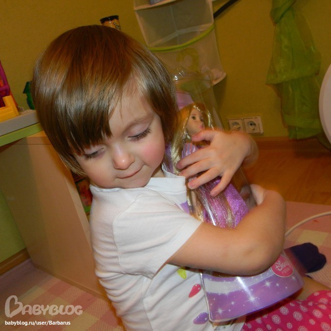 Это наша радость и любоффффф РАПУНЦЕЛЬ диснеевская,давно мы неё глаз положили, а Светик услышала,узнала,уловила---уж не знаю какой магией она пользуется-но ребёнок в полном восторге!!! Даже толком посмотреть не даёт,а мне тоже хочется ей волосы причесать,такая она класснючая
