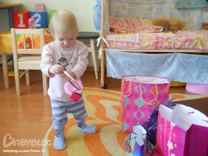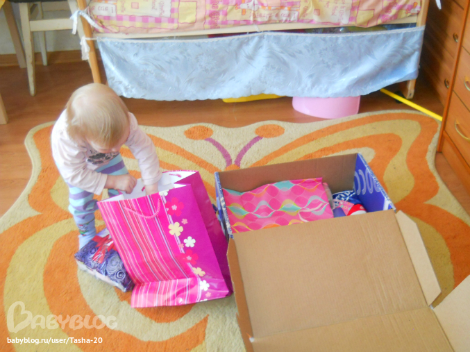 Увидев такое количество красивых подарочных пакетиков, столько всего интересного радости ребенка не было предела!