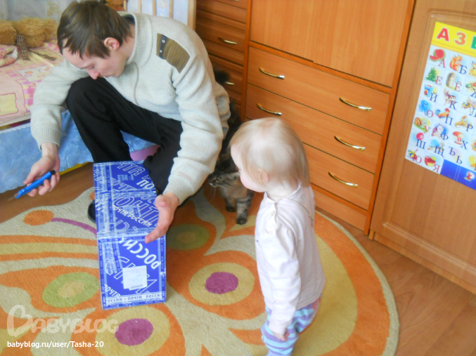 Открывала вместе с папой,забыла даже про то,что пришло время кушать,занялась ей основательно!