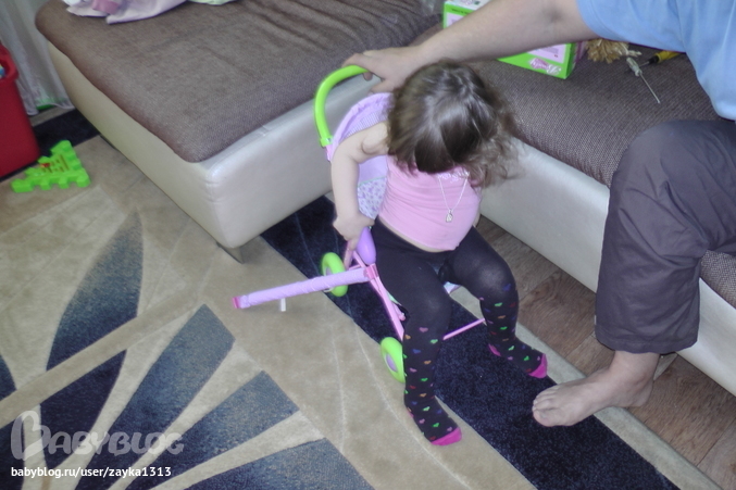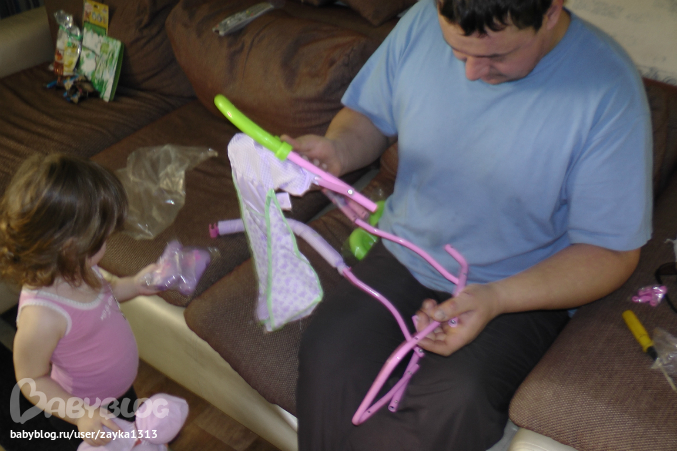 Помнишь тележку для супермаркета Андрюши? Он залез в нее как в натоящую ( папа его сажает в ТЦ) и провалил ее)