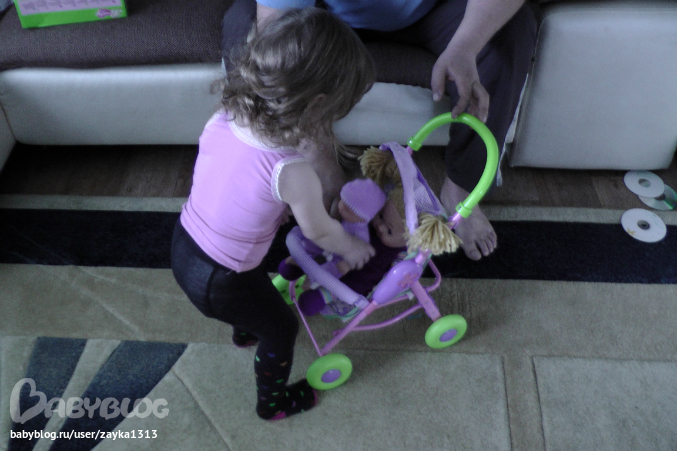 варе так понравилась коляска, что она решила залезть сама! Гнездилась в коляску попой!