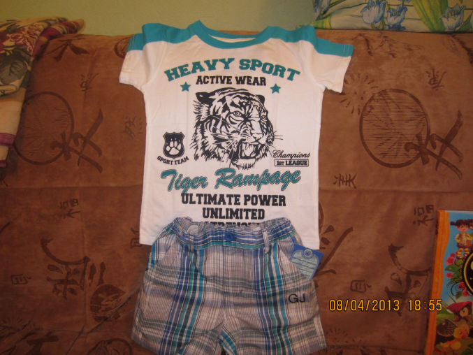 еще в подарочке красивая футболочка с тигром( Арсюшка родился в год тигра) и шортики в садик нам как раз)))
