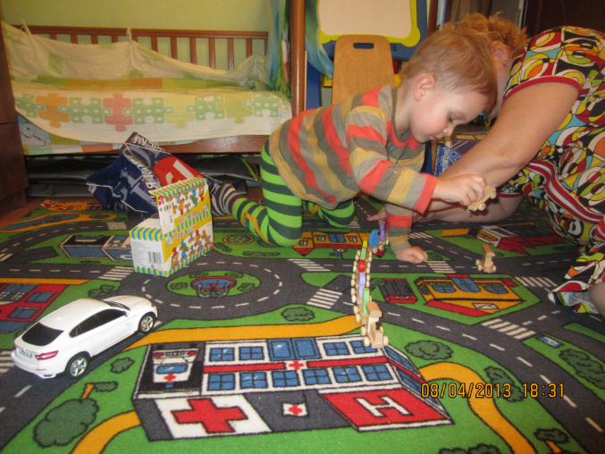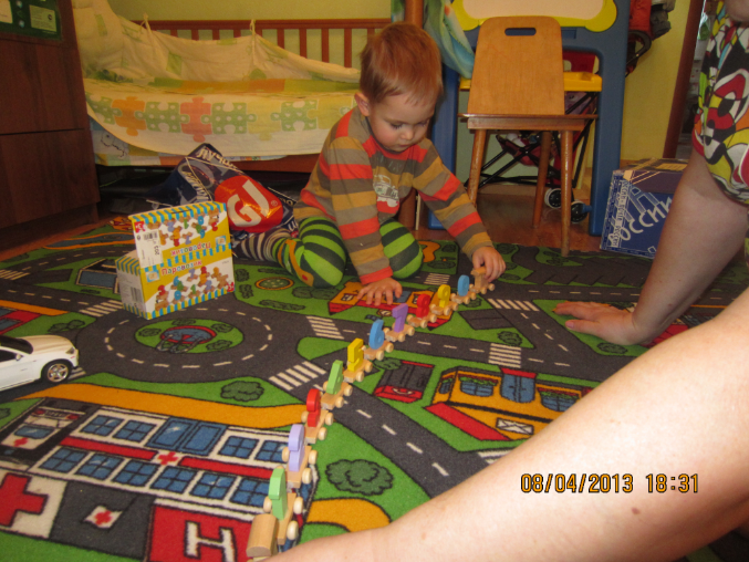 потом с бабушкой собрали, обалденный деревянный паровозик с цыфорками