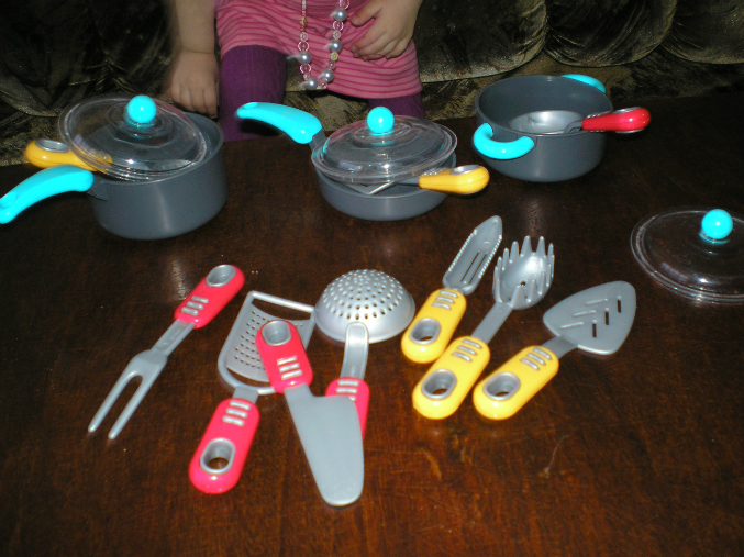 И коробка кукольной посудки(даже у меня на кухне нет такого разнообразия)
