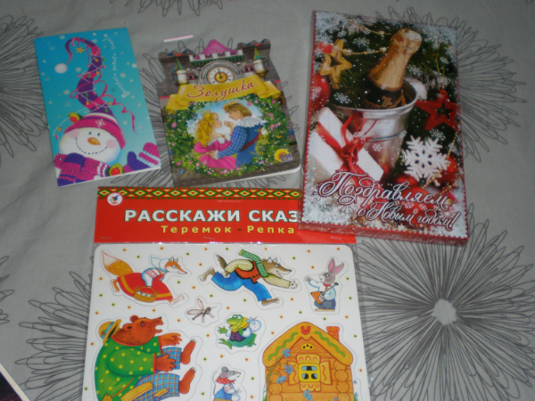 Итак, посылка просто супербольшая !!! столько всего, глаза разбегались ,пока все доставали !!! магнитики со сказкой нашли свое место на холодильнике, они очень красочные, Карине нравится их рассматривать