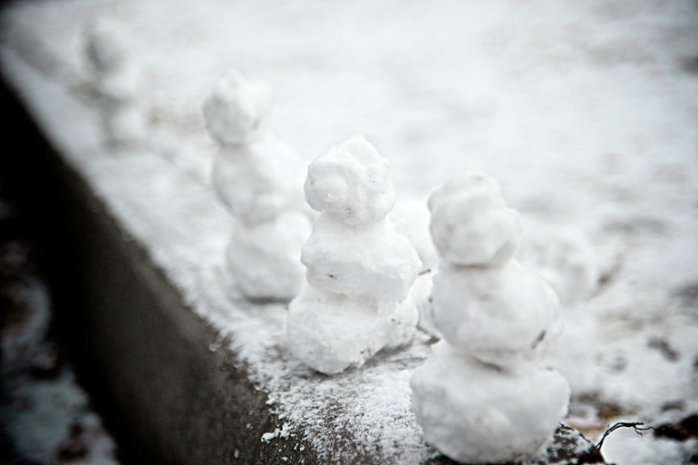 А пальцы мои окоченели, я леплю маленьких снеговиков....они катаются с горки и кружатся на каруселях. Этим и должны заниматься свежеиспеченные снеговики!