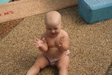 9. Дыхательное. Иду спиной вперед, веду Соню под грудь, сама дышу в воду. Соня смеется и веселится, вместо того, чтоб брать пример, как дышать в воду)))))