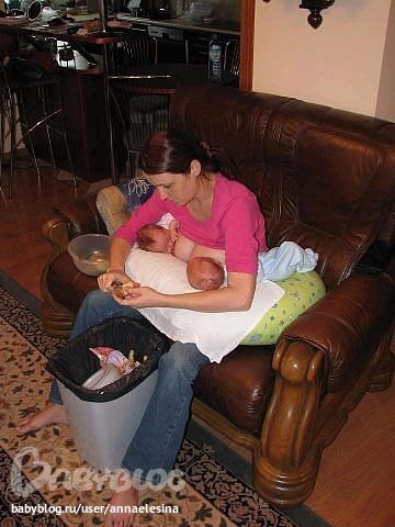 Нормальные люди на ББ спрашивают: "Что это???" Отвечаем, это урод со звучным ником Миньета http://www.babyblog.ru/user/lenta/Muleta , проплаченный смесепроизводителями, сидит и без устали (потому что ПЛАТЯТ, и это её РАБОТА) разметает вокруг себя говно о ГВ на ББ. А фотки, кстати, хорошие. Женщина, мать двойни, не только кормит их, но и перечистила всю картошку и другие овощи на суп, молодец, и притом, не на хребтине их держит, а без нагрузки на позвоночник на подушечке они у неё лежат. Да и муж не в напряге (не то, что у ИВэшниц), есть даже время сфотать любимую женщину, такую умницу. Приспособилась, дай бог, каждой в её ситуации.