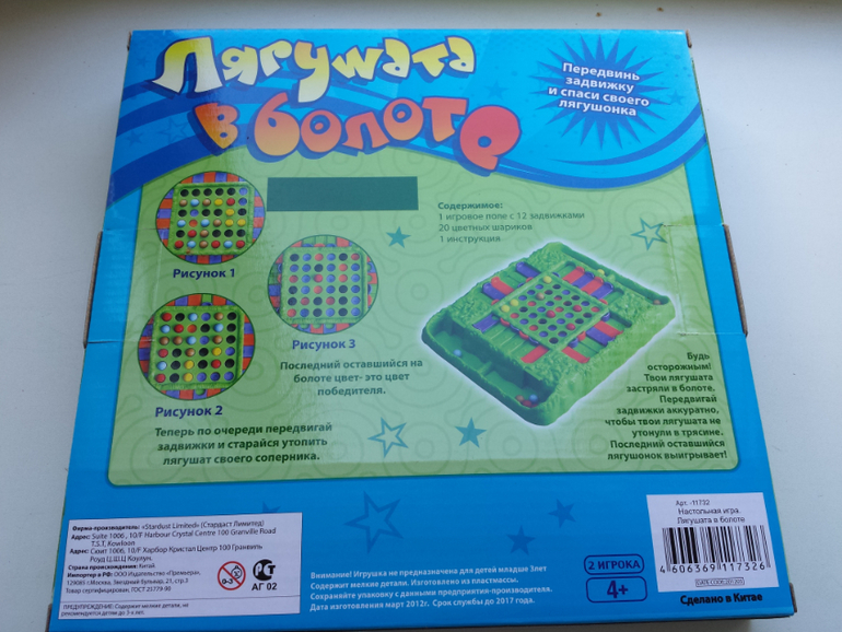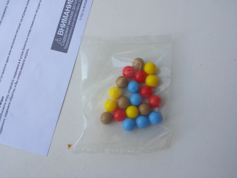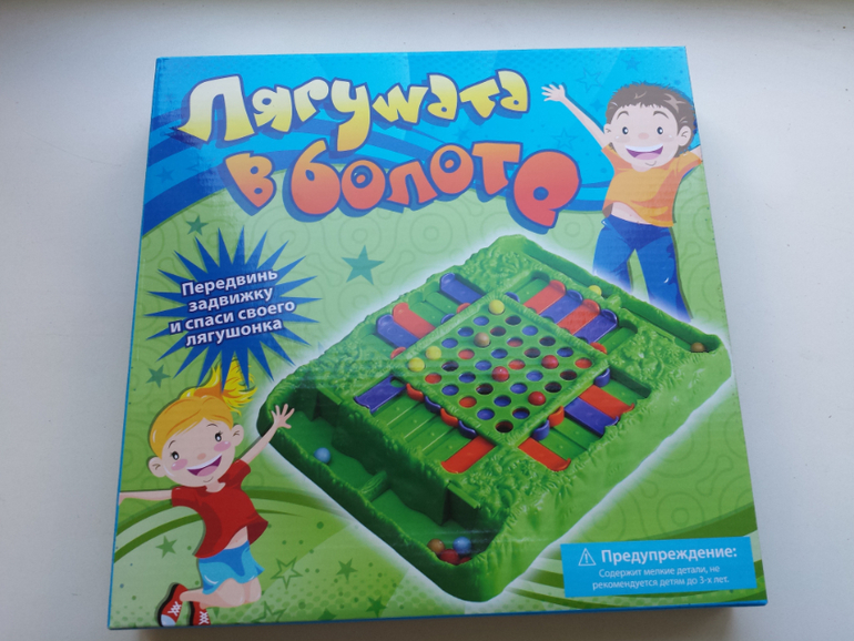 ИгрыДля игры в «Лягушата в болоте» нужны 2 участника. Каждый игрок получает в свое распоряжение шарики одного цвета, символизирующие лягушат. Нужно расставить их на игровом поле-болоте и по очереди двигать задвижки, стараясь выбить шарики противника и спасти свои. Выигрывает тот, у кого останется последний лягушонок. Игра способствует развитию логического мышления, усидчивости. В состав игры входит складное игровое поле, кубик и фишки четырех цветов.